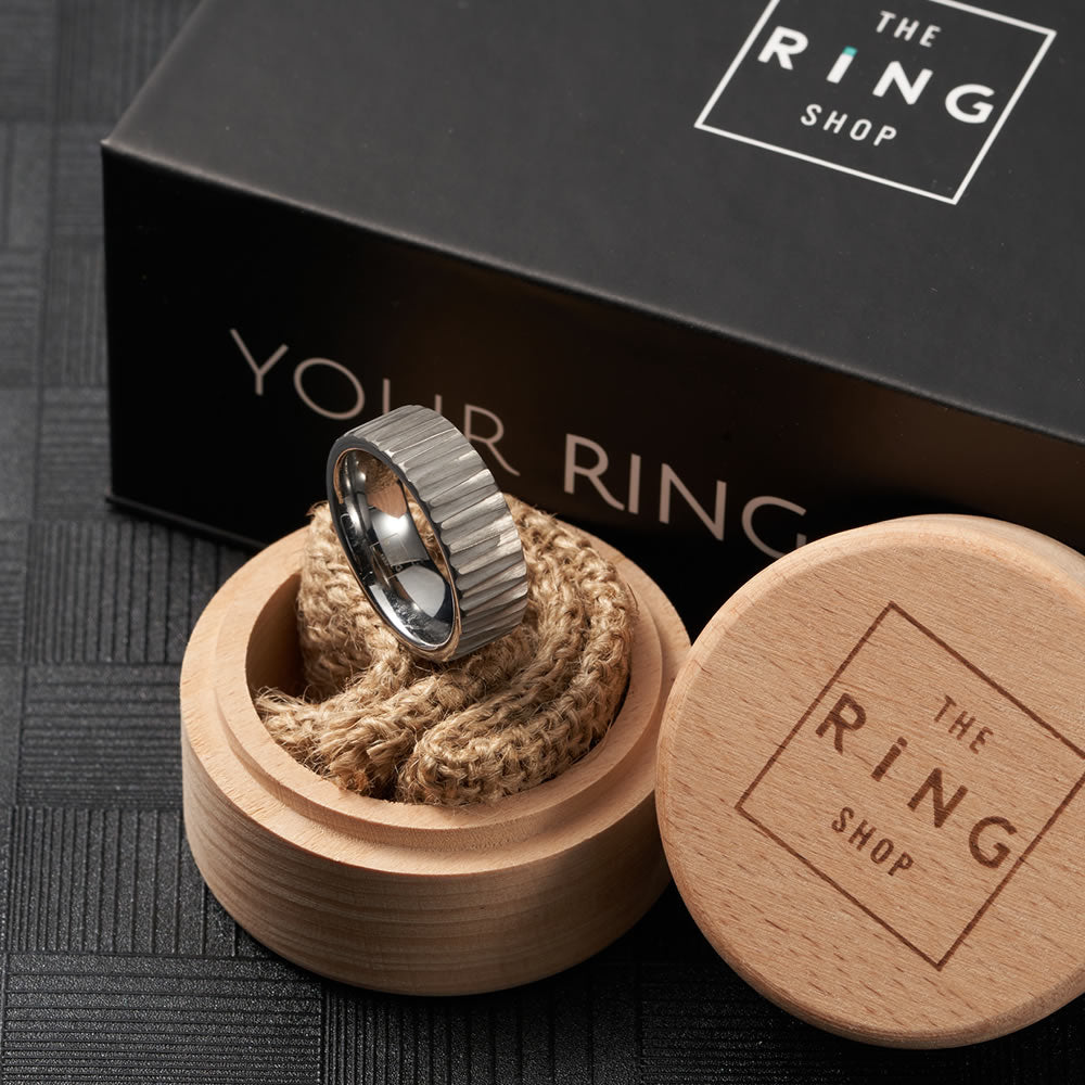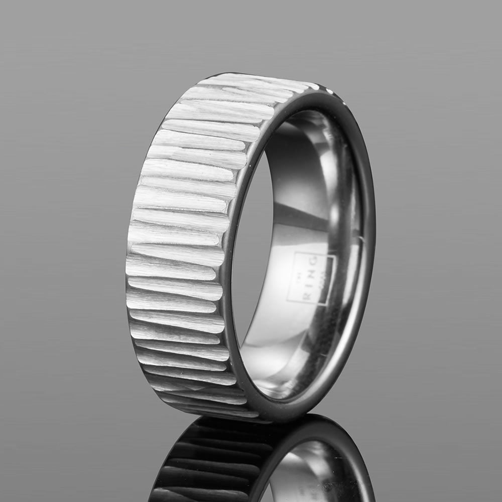 Rugged and stylish, Nocturne is made for the bold. Nocturne's sleek machine-cut design is comprised of a tungsten carbide build for strength and durability, with a high quality inner polish to ensure a perfect comfort fit.