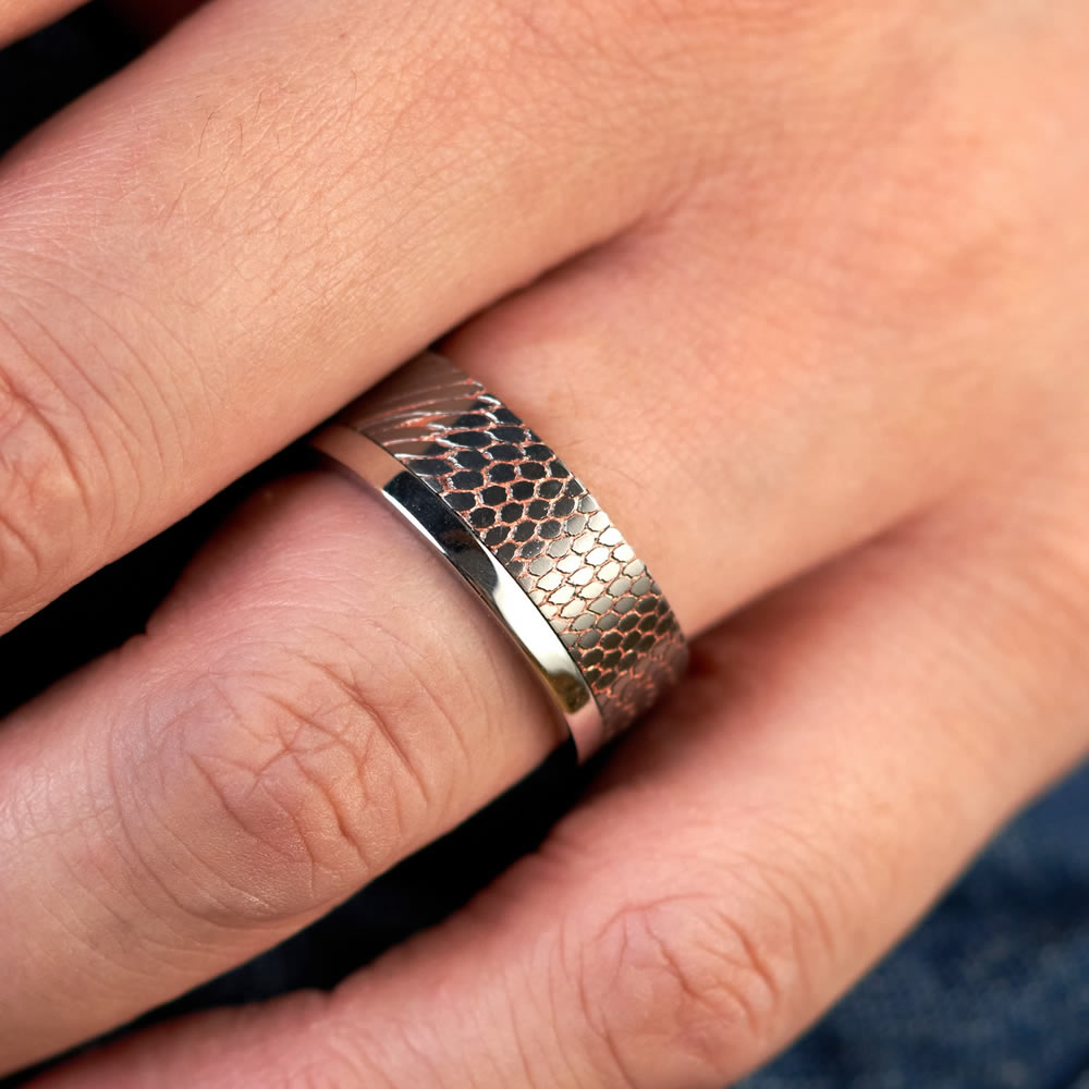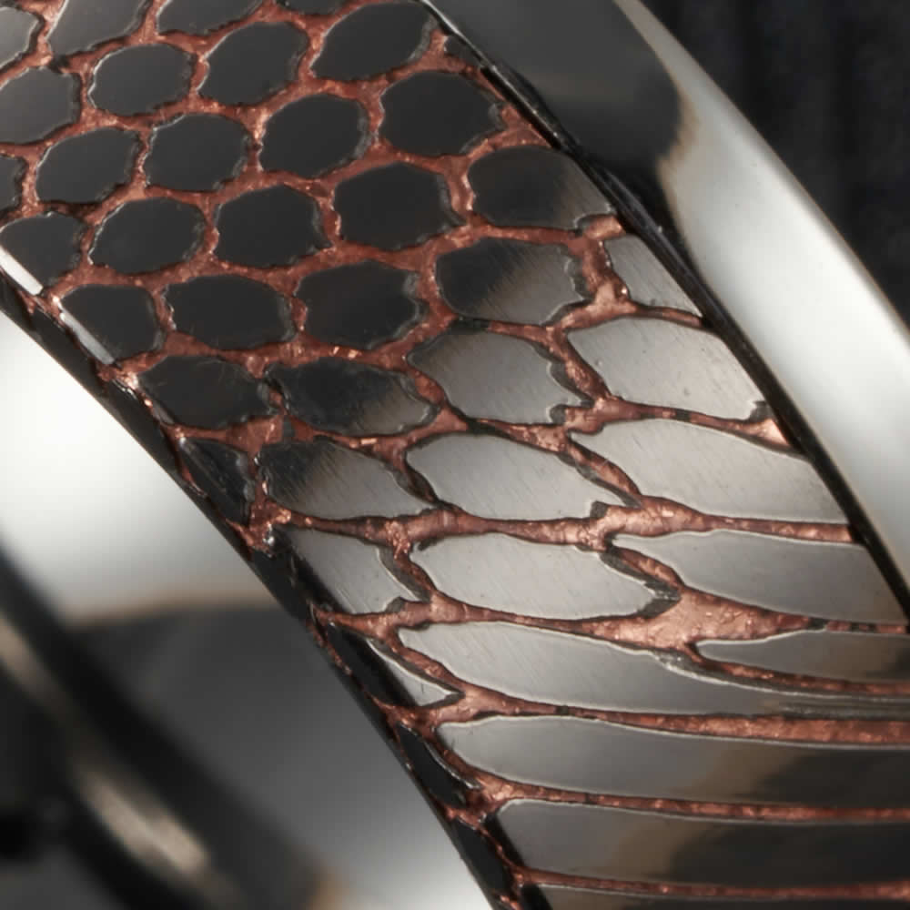 For a blend of alternative design and metals, look no further than Thor - a stunning masterpiece created with the fusion of advanced superconductor elements and cobalt chrome. Every ring boasts a unique pattern, ensuring yours will be a truly original piece.