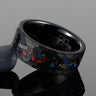 Cosmos is comprised of fragments of authentic Muonionalusta meteorite and crushed opal stone, inlaid into a durable polished tungsten carbide inner ring.