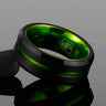 Nano is comprised of a tungsten carbide composite, with a matte black finish and green center plated groove. The edges are beveled and inside is polished to provide a comfortable fit.