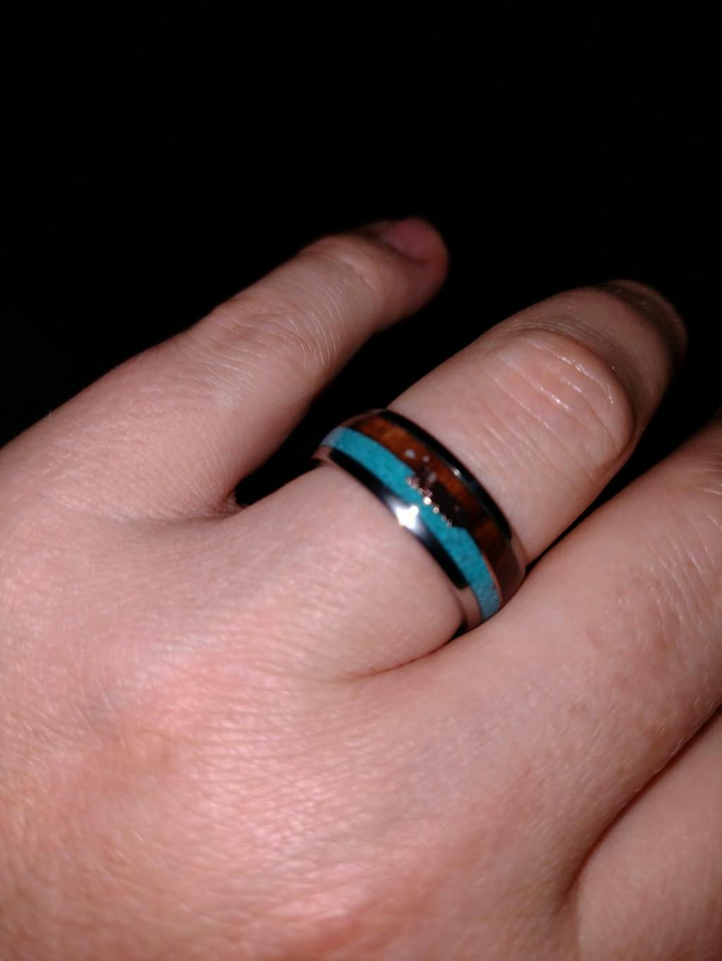 Tungsten Carbide Ring with Koa Wood and Turquoise Veneer