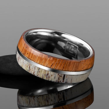 Titanium Ring with Koa Wood and Sustainable Deer Antler