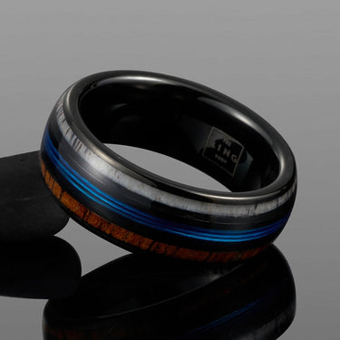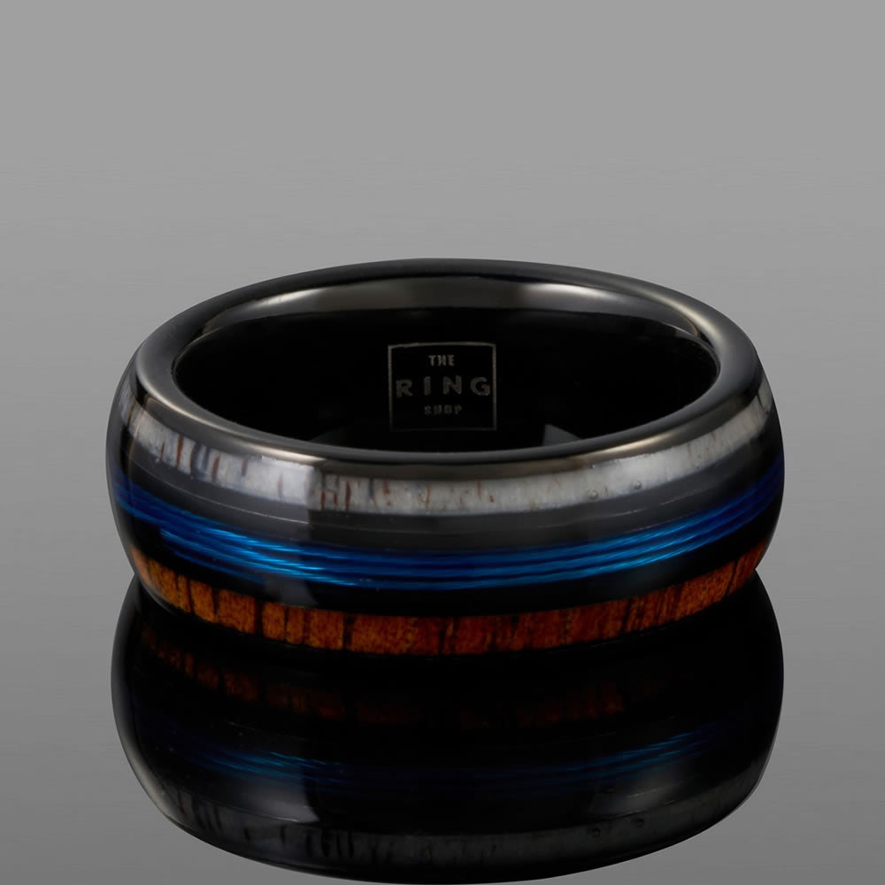 Tungsten Carbide Ring with Acacia Wood and Deer Antler