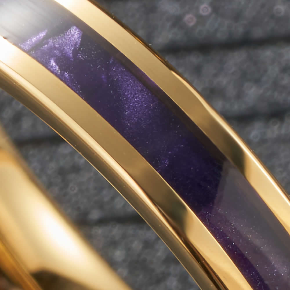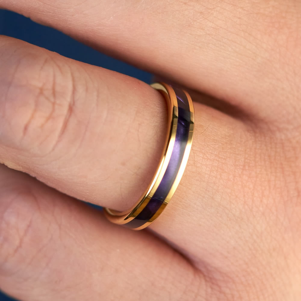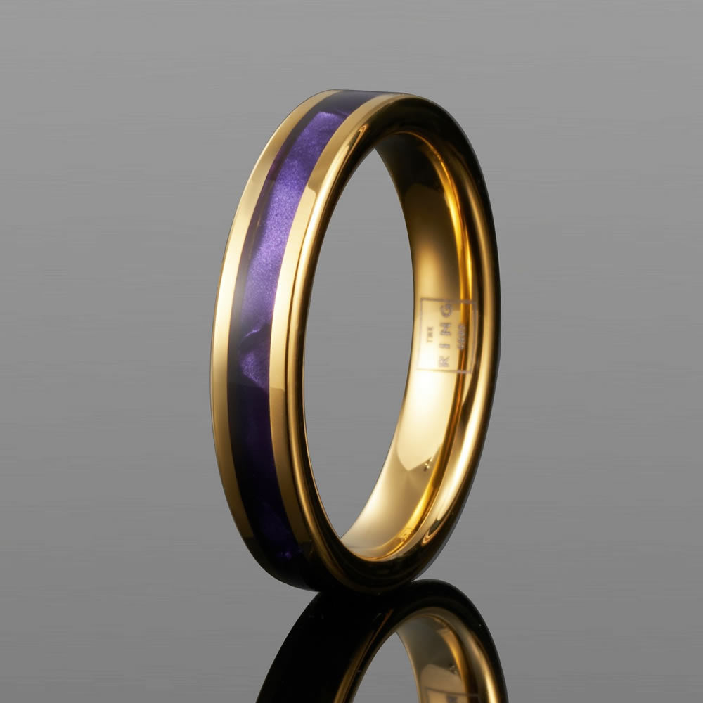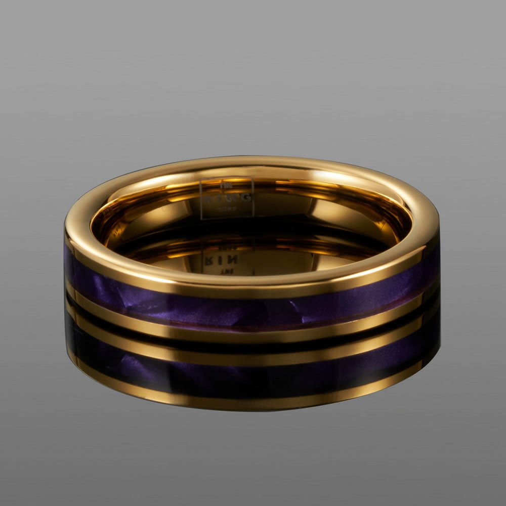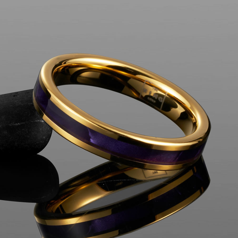 Viola is crafted from a durable tungsten carbide construction, with a mesmerising coloured polymer inlay. This piece is an eye-catching work of craftsmanship, built to last and designed to make a statement.