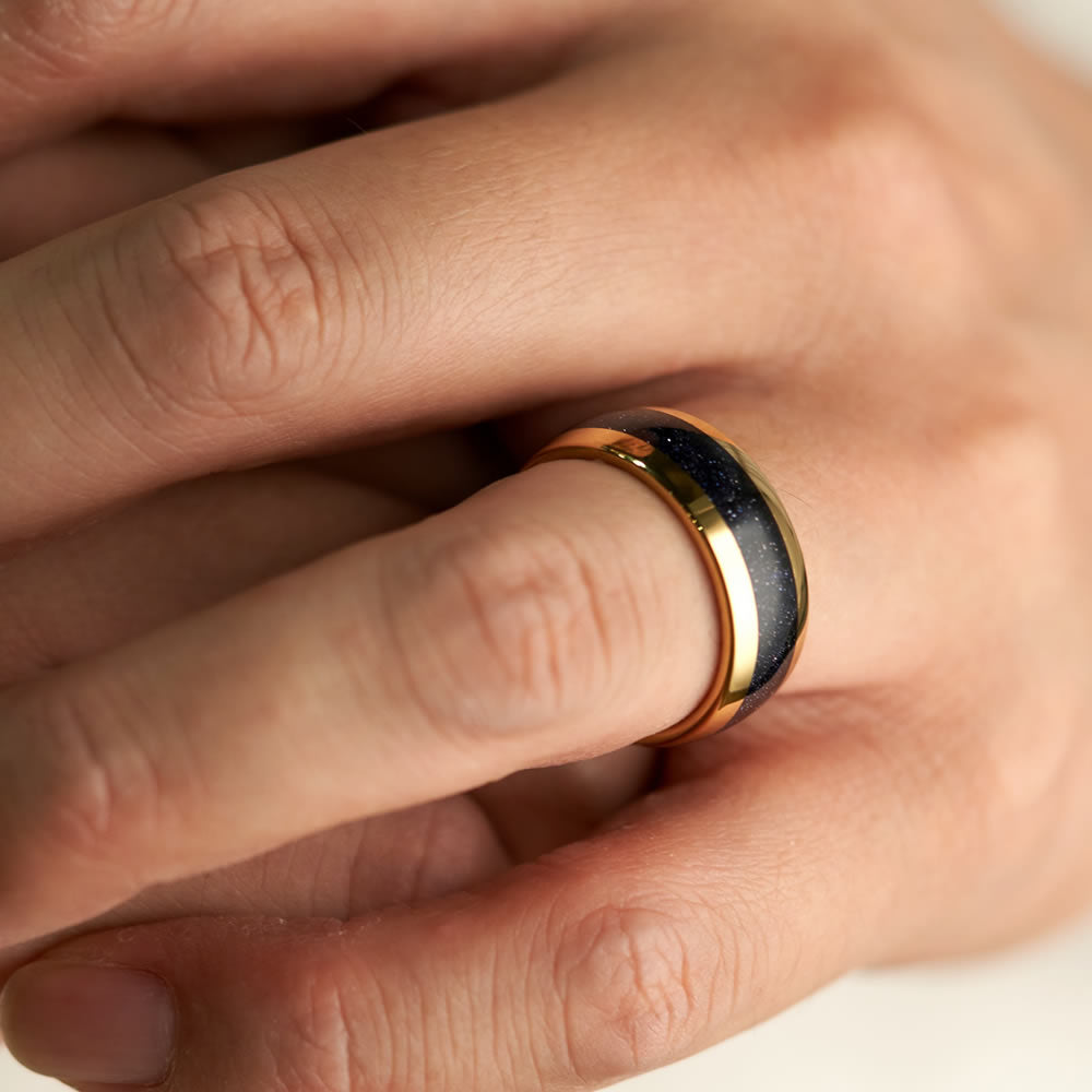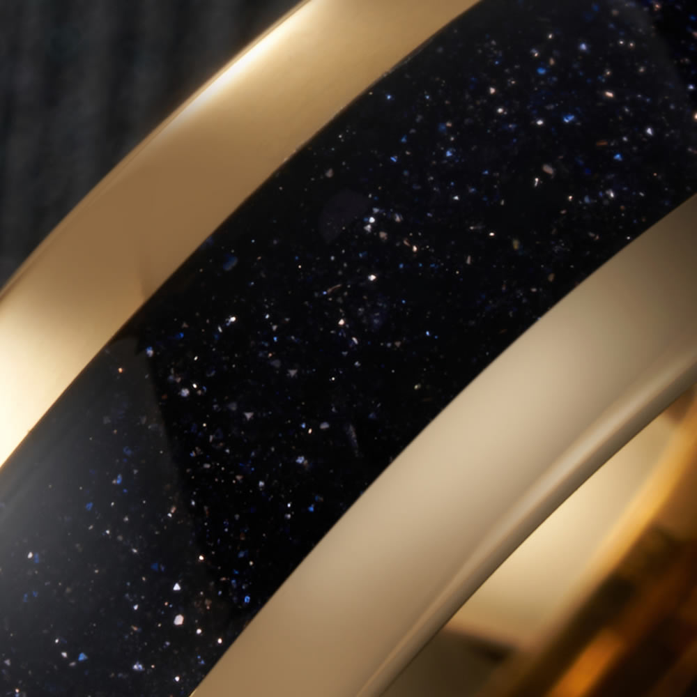 Discover the perfect blend of style and strength with Astral. The sturdy tungsten carbide body is expertly adorned with a delicate blue sandstone inlay, creating a lavish design that will last.