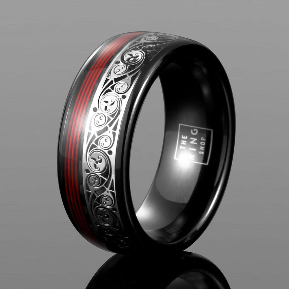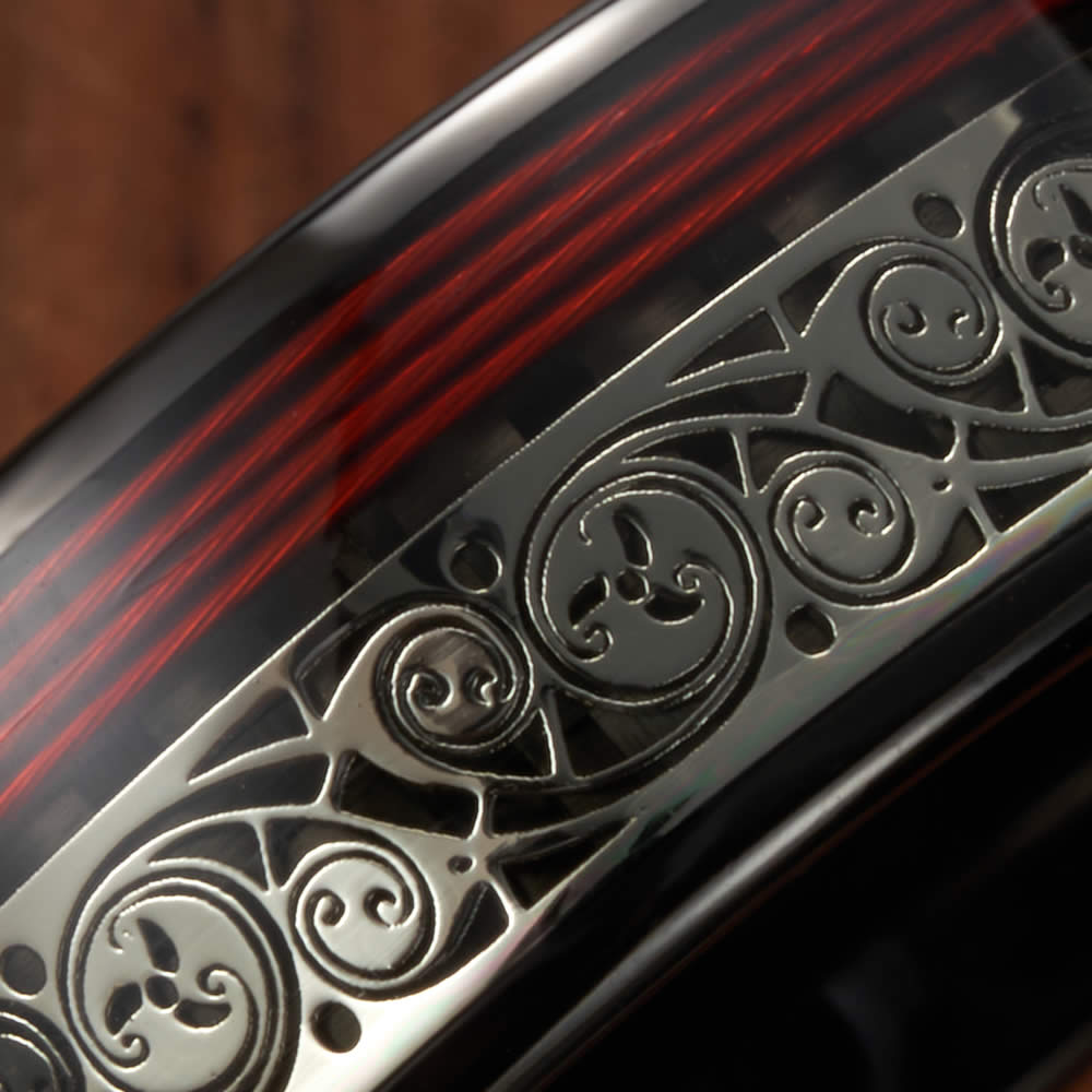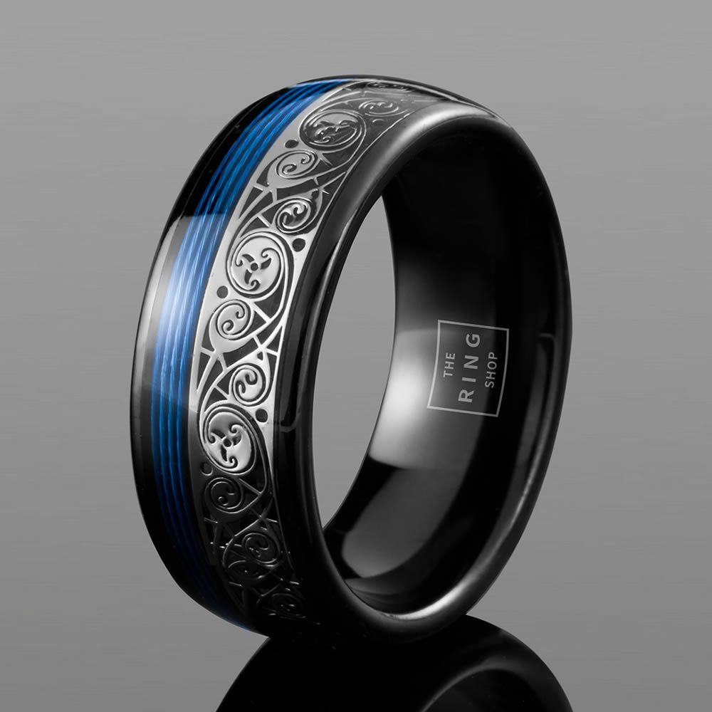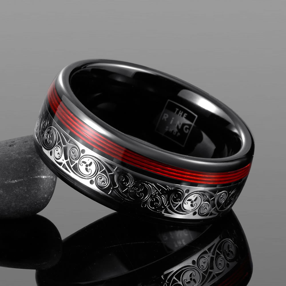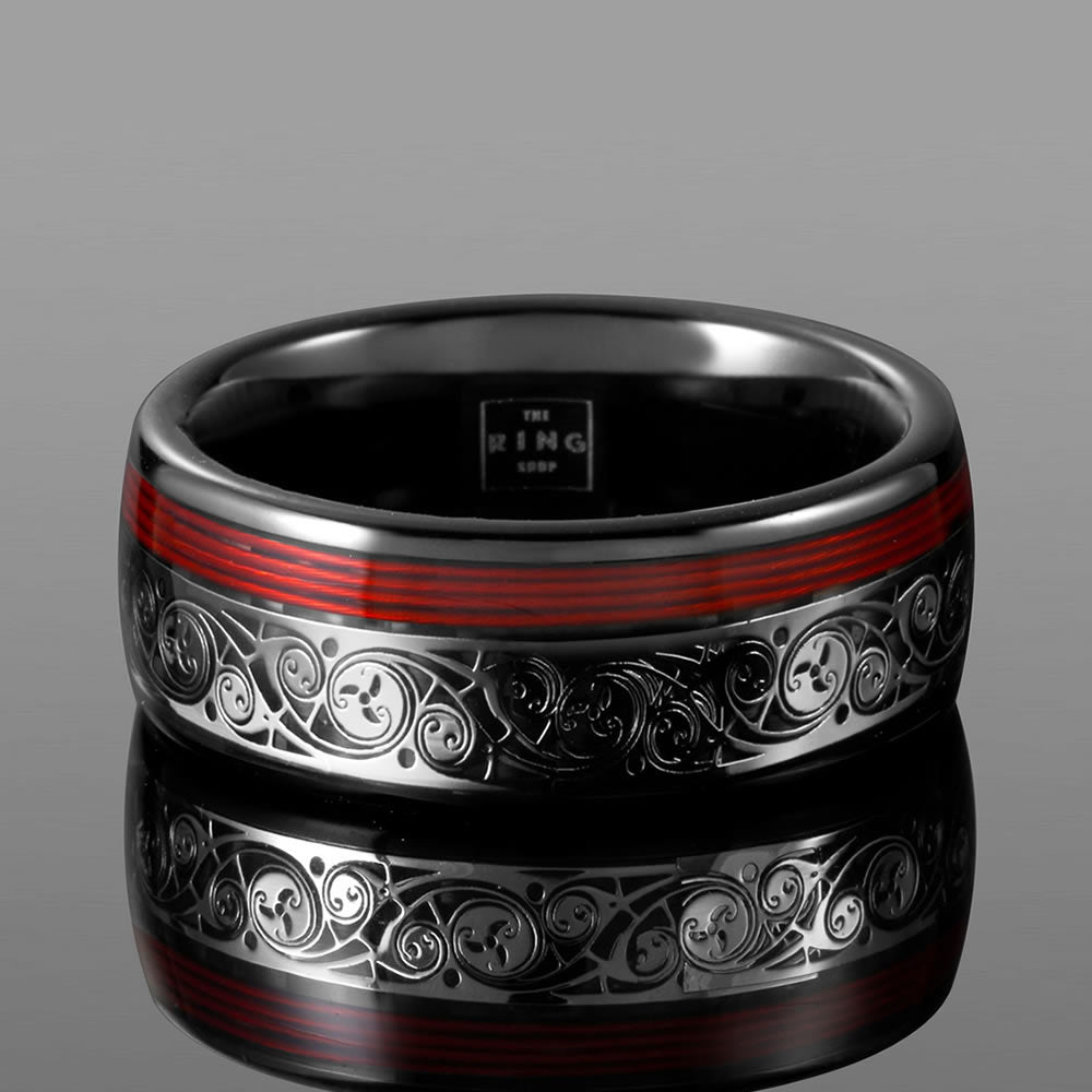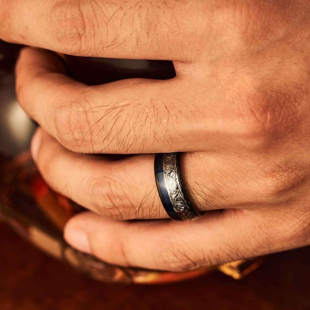 Chrono is one of our favourite rings, not least due to its striking pattern of dynamic silver swirls and waves. The sleek, professional ring is comprised of a tungsten steel build for strength and durability, with a high quality polish to ensure a perfect comfort fit.