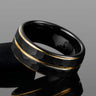 Onyx is one of our most exclusive rings, with ion-plated gold bands cutting through a black-brushed hexagonal finish. The sleek, professional ring is comprised of a tungsten carbide build for strength and durability, with a high quality polish to ensure a perfect comfort fit.